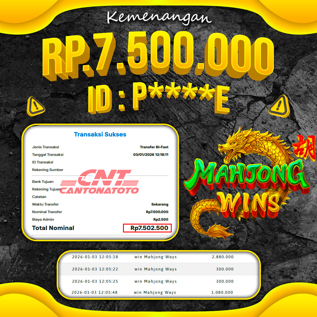 ???????? SPIN SEKALI AUTO SENYUM! REZEKI DATANG TANPA PERMISI ???? BUKTI PEMBAYARAN AMAN & CEPAT ???????? ❤️SEL4M4T KEPADA M3MB3R S3TIA CANTONATOTO ????TANGGAL : 3 JANUARI 2026 ????USER ID : P****E ????B0 : CNTT ????M3N4NG : MAHJONG WAYS ????RP. 7.500.000 ???????????????????????? : https://rebrand.ly/daftarcantona
